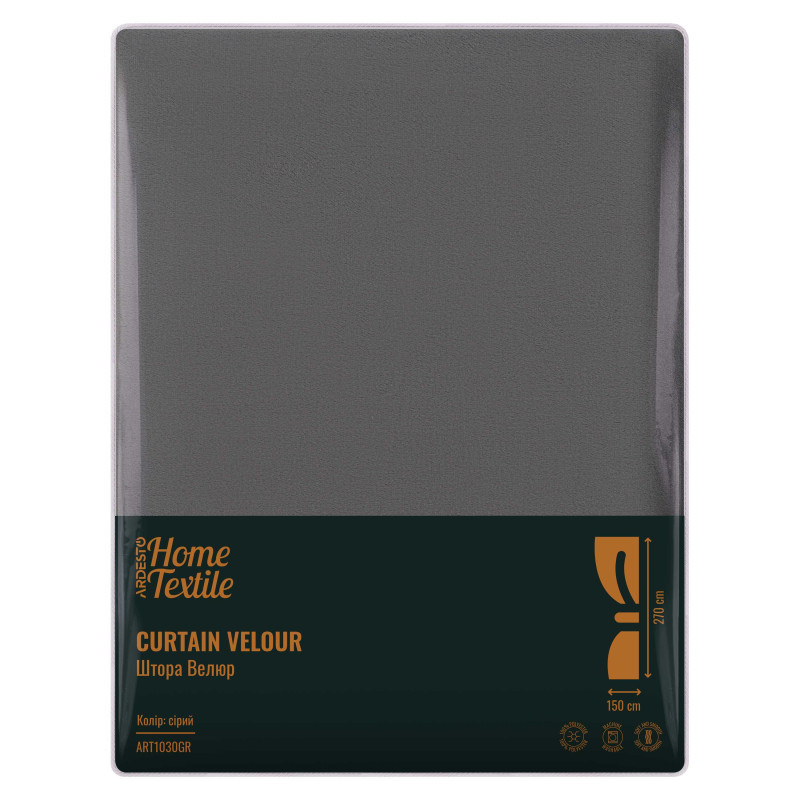 Штора ARDESTO з велюру сірого кольору є елегантним і вишуканим елементом декору для віконного простору. Виготовлена з довговічного 100 % поліестеру штора має гладеньку текстуру, щільна, важка та добре захищає від сонячних променів. Розмір виробу становить 150 × 270 см.