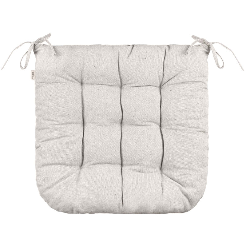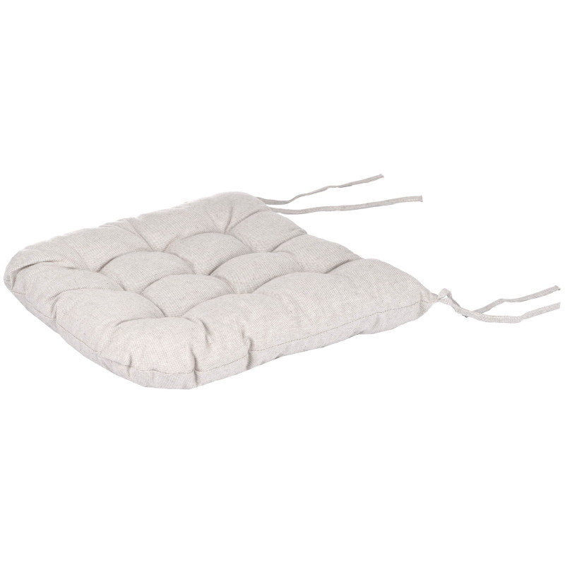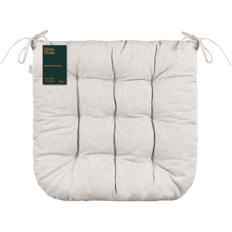 Подушка для стільця стане вдалим доповненням до будь-якого інтер’єру завдяки компактному розміру 40 × 40 см і стильному світло-сірому дизайну. Чохол вироблений зі 100 % бавовни, тоді як наповнювач складається з холлофайберу (50 %) та поліпропілену (50 %), що зумовлює комфорт. Для збереження первинного вигляду подушки варто дотримуватися рекомендацій щодо догляду: прати в машині за делікатного режиму (30 °C); не сушити в сушильній машині, а тільки у вертикальному положенні; прасувати за температури до 150 °C; також заборонено відбілювання та хімчистка.