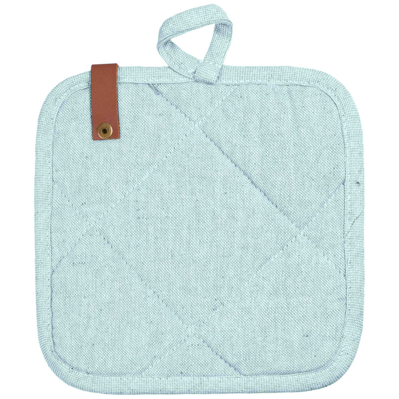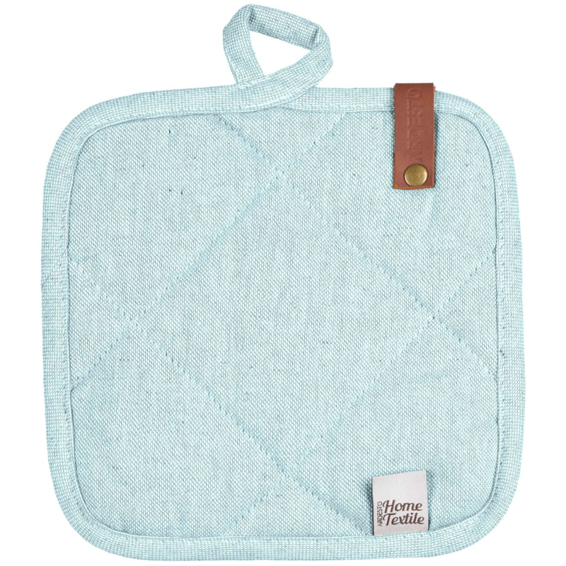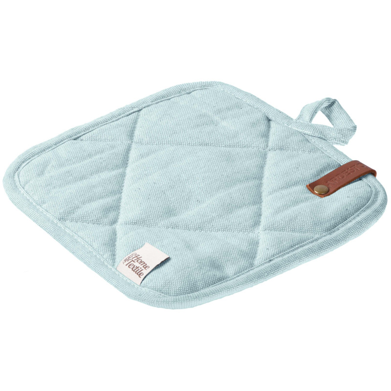Стильна та практична прихватка, виконана в кольорі бірюза, стане незамінним помічником на кухні. Вироблена з якісної 100 % бавовни, має розмір 20 × 20 см, що зумовлює універсальність і зручність використання. Наповнювач із ватину забезпечує захист від опіків. Для збереження первинного вигляду прихватки варто дотримуватися рекомендацій щодо догляду: прати в машині за делікатного режиму (30 °C); не сушити в сушильній машині, а тільки у вертикальному положенні; прасувати за температури до 150 °C; також заборонено відбілювання та хімчистка.