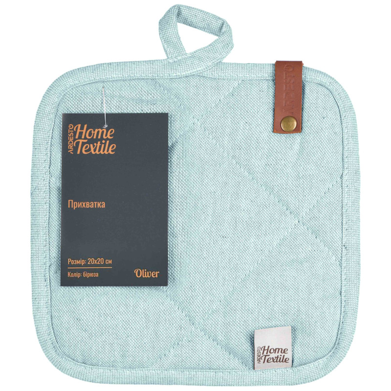 Прихватка ARDESTO Oliver, 20х20см, 100% бавовна, нап-ч: ватин, бірюза