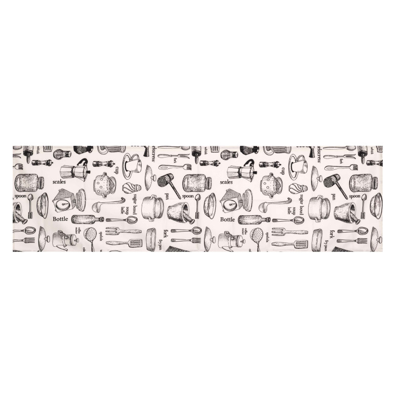 Ранер є текстильним виробом, який виконує естетичну та практичну функції, захищаючи поверхню від забруднення та надаючи оригінальності сервіруванню. Матеріали виготовлення виробу поліестер (90 %) і бавовна (10 %) забезпечать тривалий термін слугування. Ранер розміром 40 × 140 см у дизайні Kitchen матиме ефектний вигляд на будь-якій сучасній кухні. Для збереження м’якості та кольору тканини під час догляду необхідно дотримуватися таких вимог: прати в пральній машині за 30 °C на делікатному режимі; сушити в машині за низької температури; не відбілювати; не чистити будь-яким розчинником, крім трихлоретилену; прасувати за температури до 110 °C.
