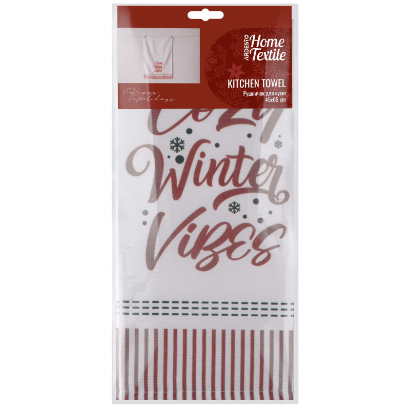 Рушничок для кухні ARDESTO Happy Holidays 45х65см, 90% поліестер, 10% бавовна, білий