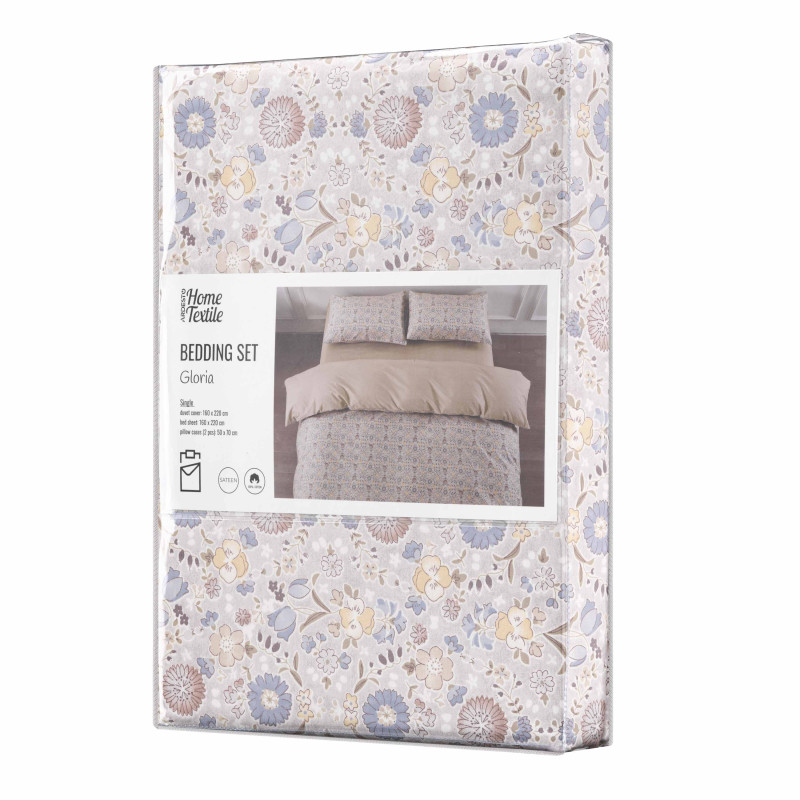 Комплект постільної білизни Gloria – це поєднання витонченого дизайну й безкомпромісної якості. Вироблена зі 100 % бавовняного сатину щільністю 200 ТС, постіль подарує винятковий комфорт і затишок. М’яка тканина ніжно пестить шкіру, забезпечуючи її дихання і створюючи відчуття свіжості та легкості. Розкішний дизайн із квітковими мотивами додає спальному місцю елегантності та спокою.