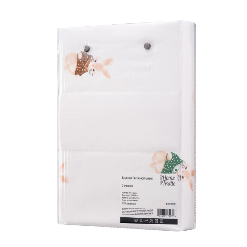 Комплект постільної білизни Gloria – це поєднання витонченого дизайну й безкомпромісної якості. Вироблена зі 100 % бавовняного сатину щільністю 200 ТС, постіль подарує винятковий комфорт і затишок. М’яка тканина ніжно пестить шкіру, забезпечуючи її дихання і створюючи відчуття свіжості та легкості. Дизайн із милим принтом додає спальному місцю особливого шарму.