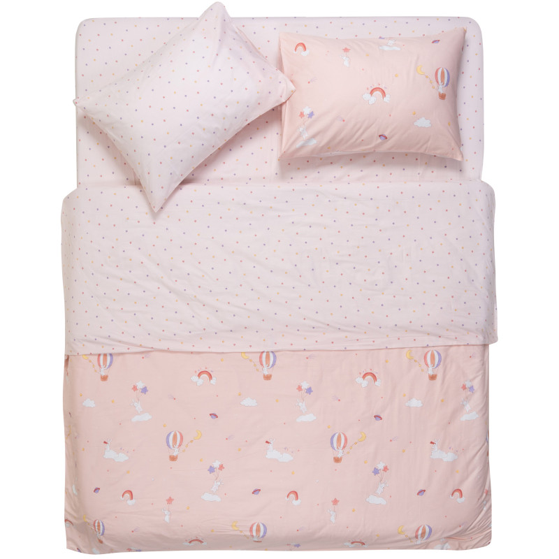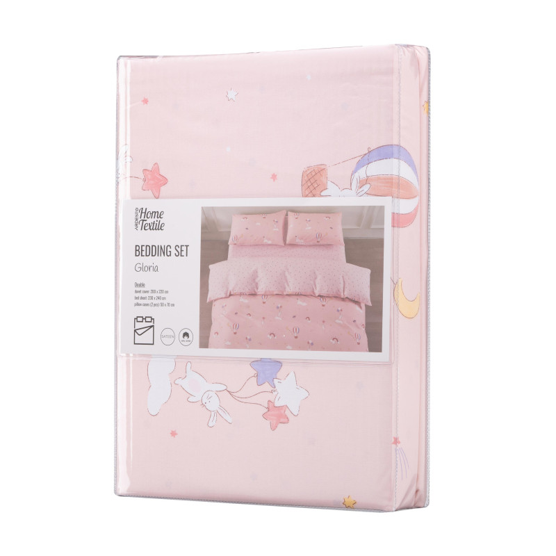 Комплект постільної білизни Gloria – це поєднання витонченого дизайну й безкомпромісної якості. Вироблена зі 100 % бавовняного сатину щільністю 200 ТС, постіль подарує винятковий комфорт і затишок. М’яка тканина ніжно пестить шкіру, забезпечуючи її дихання і створюючи відчуття свіжості та легкості. Дизайн із милим принтом додає спальному місцю особливого шарму.