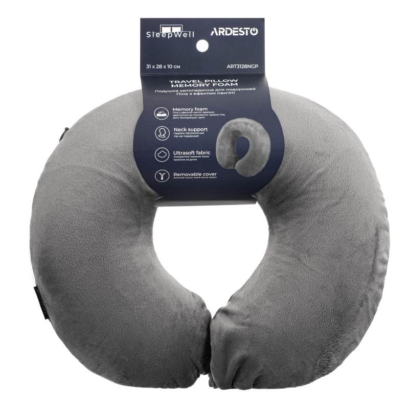 Подушка ортопедична ARDESTO Sleepwell Travel 31х28х10см, для шиї, піна меморі, сірий