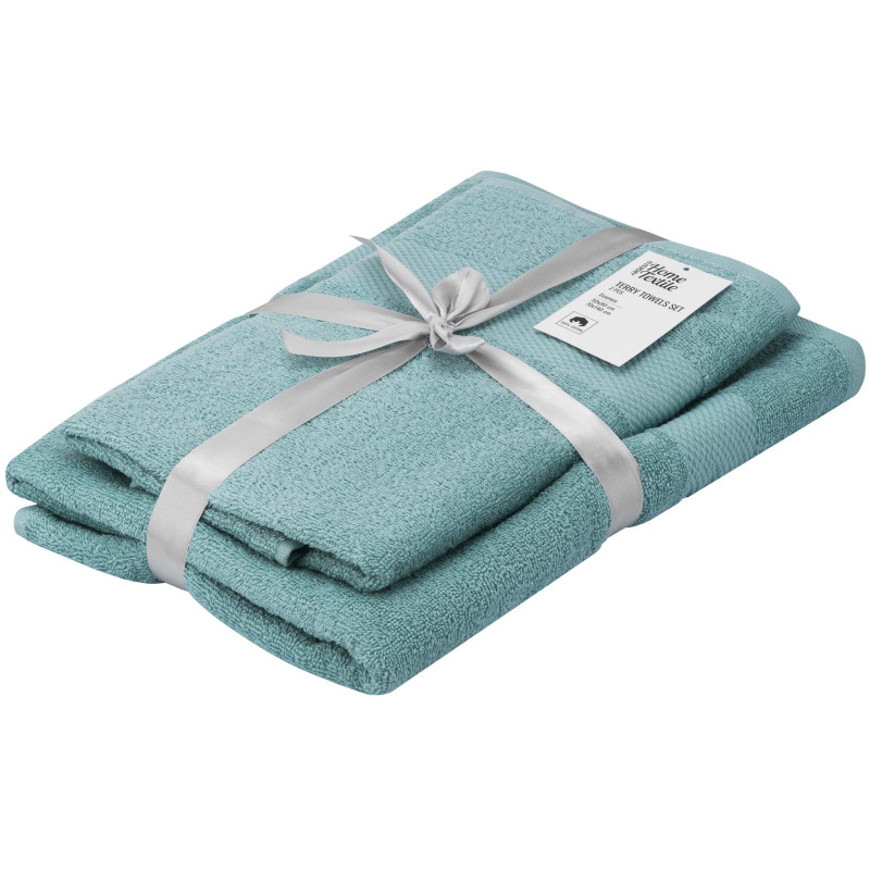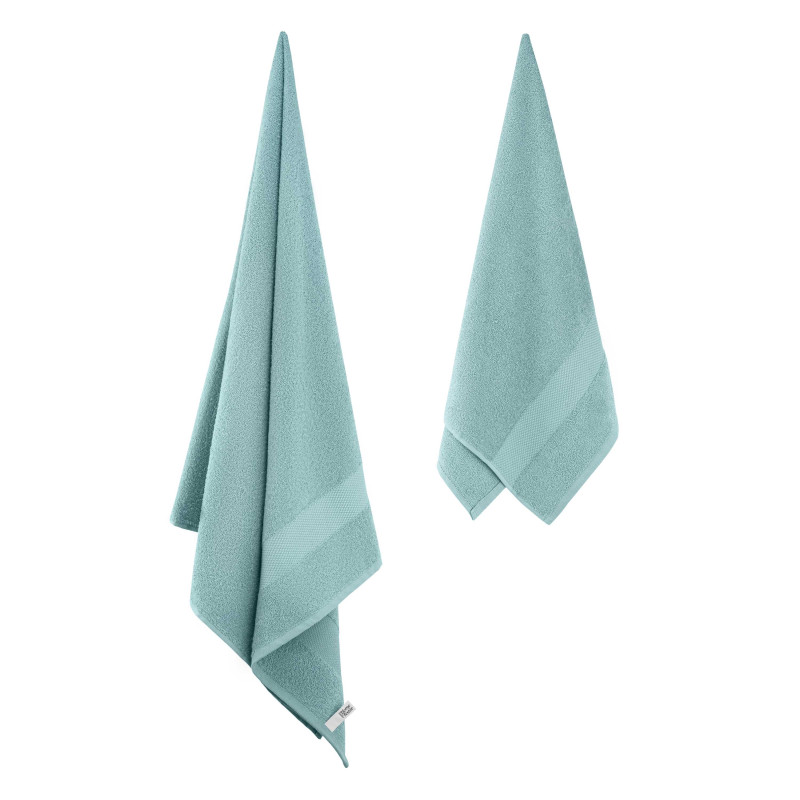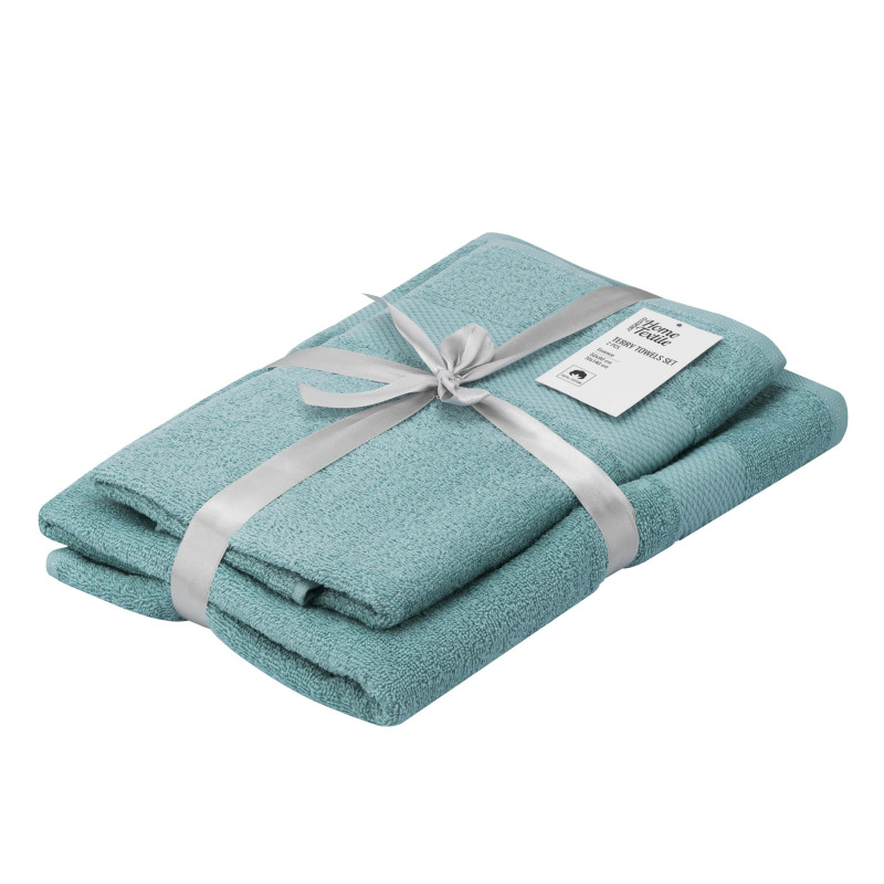 Рушники махрові ARDESTO Essence вирізняються м’яким ворсом на поверхні, який утворюється завдяки спеціальному переплетенню волокон. Вироби виготовлено зі 100 % бавовни, тож вони добре вбирають вологу, порівняно швидко висихають та зберігають зовнішній вигляд тривалий час. Щільність становить 400 г/м2 і забезпечує гарну зносостійкість рушників. У наборі два рушники кольору аква розміром 50 × 90 см та 70 × 140 см.