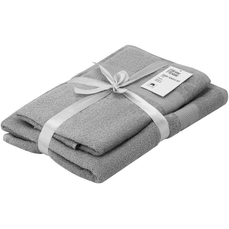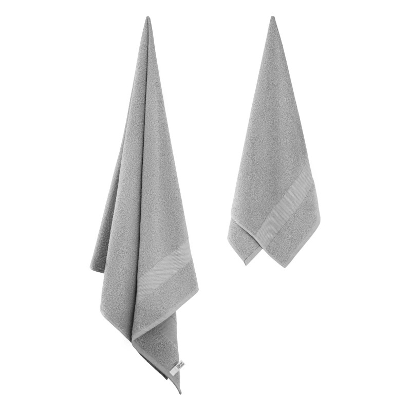 Рушники махрові ARDESTO Essence вирізняються м’яким ворсом на поверхні, який утворюється завдяки спеціальному переплетенню волокон. Вироби виготовлено зі 100 % бавовни, тож вони добре вбирають вологу, порівняно швидко висихають та зберігають зовнішній вигляд тривалий час. Щільність становить 400 г/м2 і забезпечує гарну зносостійкість рушників. У наборі два рушники сірого кольору розміром 50 × 90 см та 70 × 140 см.