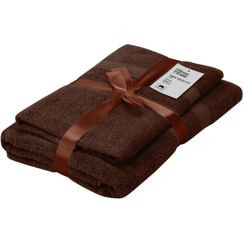 Рушники махрові ARDESTO Splendid вирізняються м’яким ворсом на поверхні, який утворюється завдяки спеціальному переплетенню волокон. Вироби виготовлено зі 100 % бавовни, тож вони добре вбирають вологу, порівняно швидко висихають та зберігають зовнішній вигляд тривалий час. Щільність становить 500 г/м2 і забезпечує гарну зносостійкість рушників. У наборі два рушники коричневого кольору розміром 50 × 90 см та 70 × 140 см.