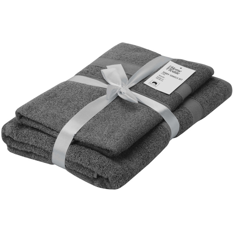 Рушники махрові ARDESTO Splendid вирізняються м’яким ворсом на поверхні, який утворюється завдяки спеціальному переплетенню волокон. Вироби виготовлено зі 100 % бавовни, тож вони добре вбирають вологу, порівняно швидко висихають та зберігають зовнішній вигляд тривалий час. Щільність становить 500 г/м2 і забезпечує гарну зносостійкість рушників. У наборі два рушники темно-сірого кольору розміром 50 × 90 см та 70 × 140 см.