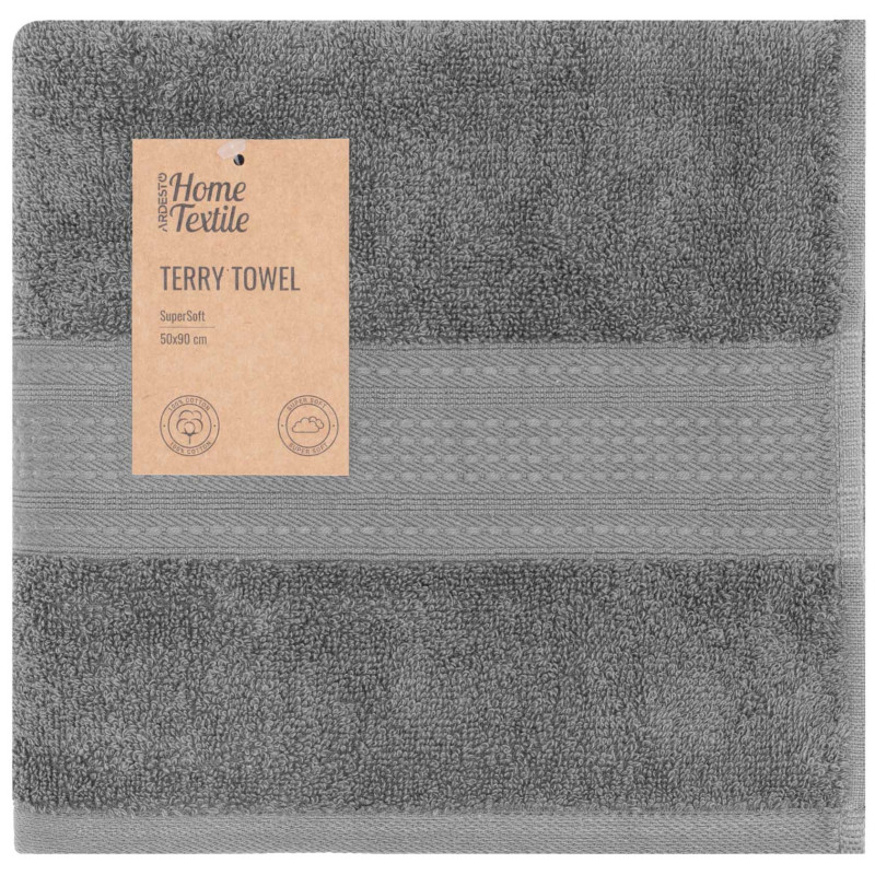 Рушник махровий ARDESTO SuperSoft 50х90см, 100% бавовна, сірий
