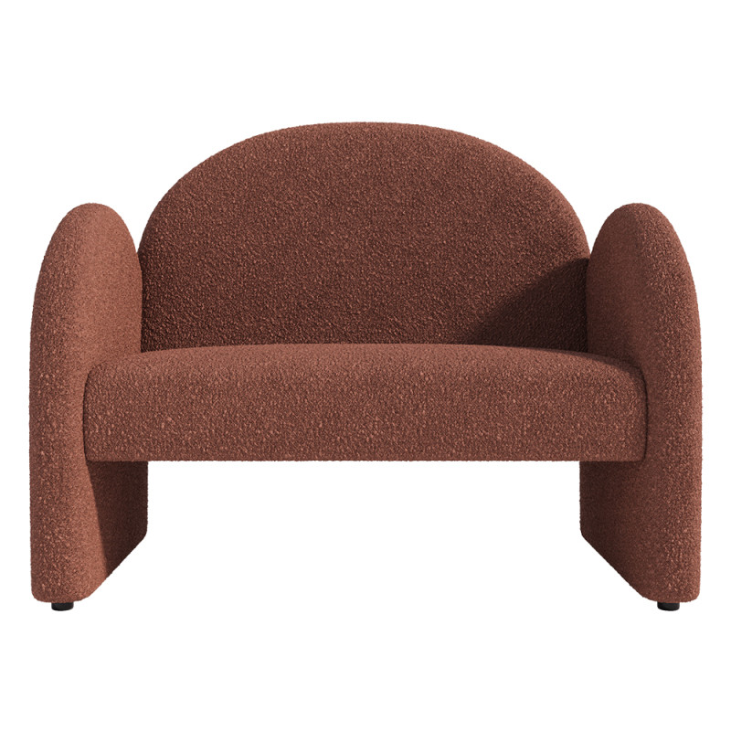 Округлі підлокітники та спинка створюють м’який, «обіймаючий» силует, а приховані ніжки забезпечують візуальну легкість конструкції. Посадка комфортна й досить глибока — ідеальна для відпочинку на двох.