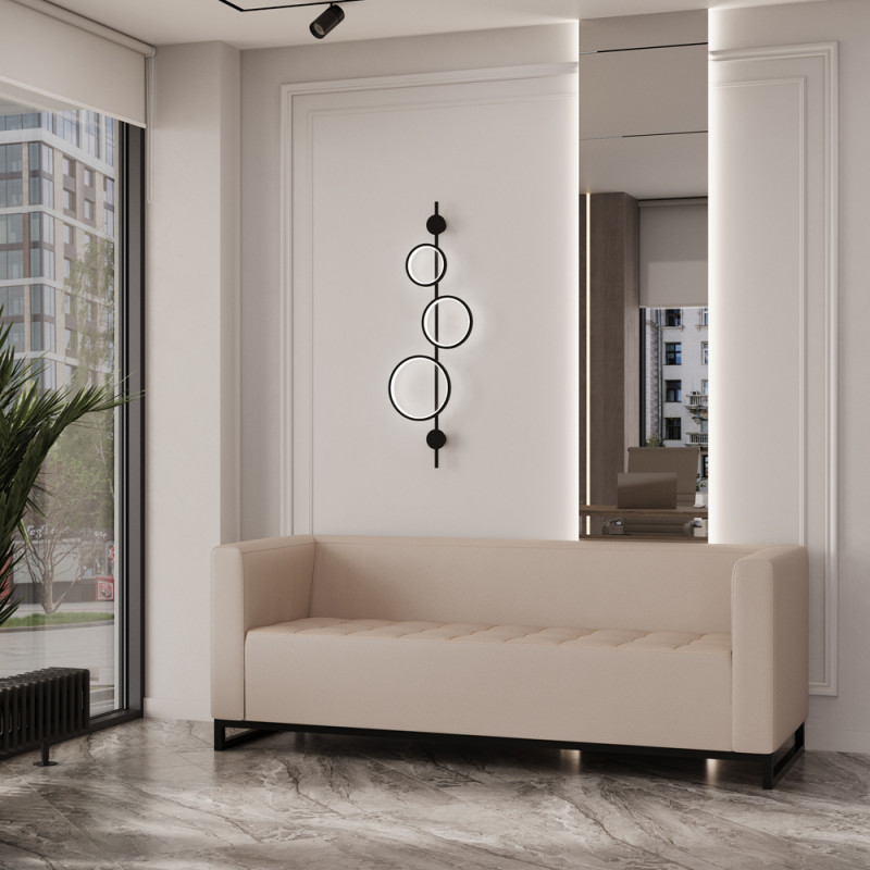 Модель не просто естетична, а й зручна у щоденному використанні. Диван невибагливий у догляді та не вимагає особливих умов експлуатації, тому його часто використовують у залах очікування, кафе та клубах.