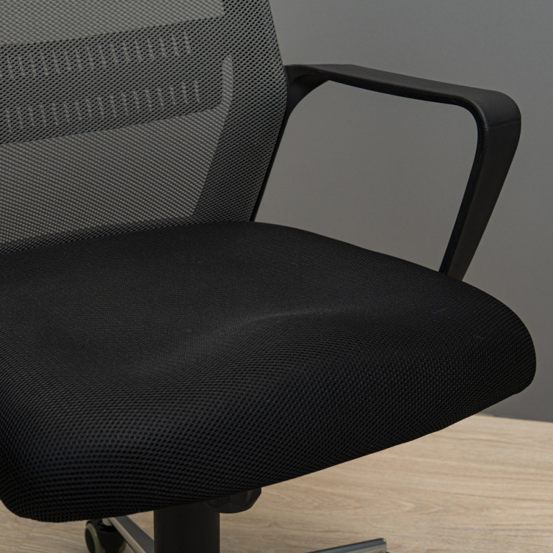 Спинка виготовлена з якісної сітчастої тканини, яка забезпечує хорошу вентиляцію та комфорт навіть у спекотні дні. Модель доступна в різних кольорах сітки, тож її легко підібрати відповідно до інтер’єру чи індивідуальних вподобань. Сидіння м’яке, зносостійке, забезпечує зручну посадку та довговічність у щоденному використанні.