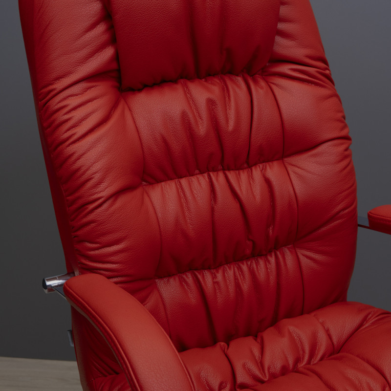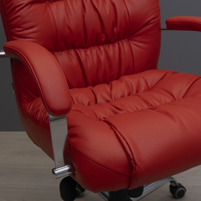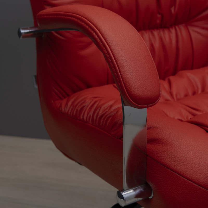 Крісло має хромовані підлокітники з м’якими подушками, що дозволяє зручно спертися на них у будь-якому положенні та комфортно розмістити руки під час відпочинку.