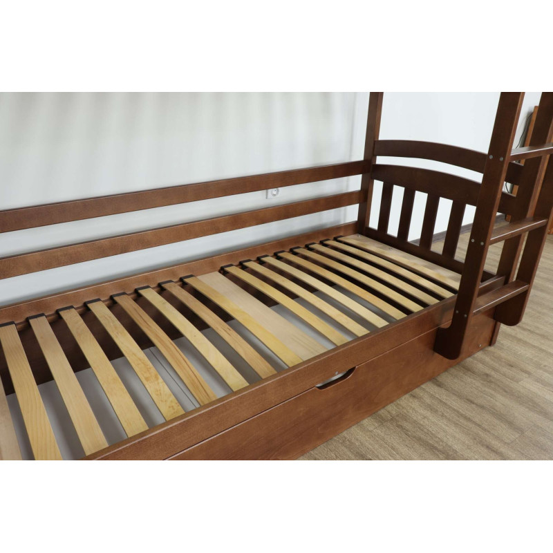 Артикул 26-1 Стан: Новий товар Матеріал - екологічно чистий масив буку, який характеризується своєю міцністю, надійністю та довговічністю. Покриття - сертифіковані матові лаки Європейського виробництва, безпечні для Вас та Ваших дітей. Каркас (основа) - ортопедичні гнуті ламелі покриті лаком, які будуть надійною основою під матрац.
