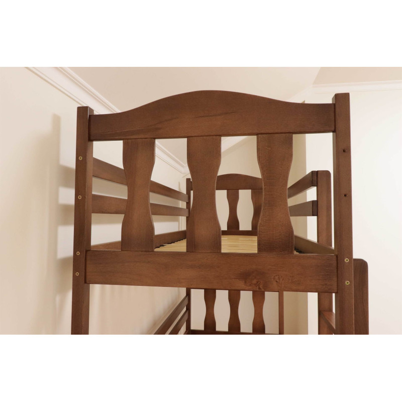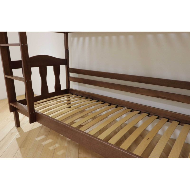 Артикул 21 Стан: Новий товар Матеріал - екологічно чистий масив буку, який характеризується своєю міцністю, надійністю та довговічністю. Покриття - сертифіковані матові лаки Європейського виробництва, безпечні для Вас та Ваших дітей. Каркас (основа) - ортопедичні гнуті ламелі покриті лаком, які будуть надійною основою під матрац.