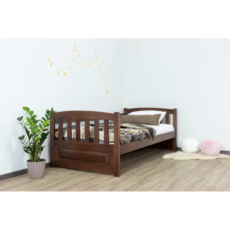 Артикул 19 Стан: Новий товар Матеріал - екологічно чистий масив буку, який характеризується своєю міцністю, надійністю та довговічністю. Покриття - сертифіковані матові лаки Європейського виробництва, безпечні для Вас та Ваших дітей. Каркас (основа) - ортопедичні гнуті ламелі покриті лаком, які будуть надійною основою під матрац.