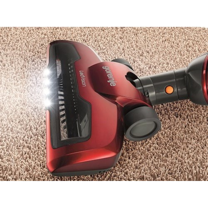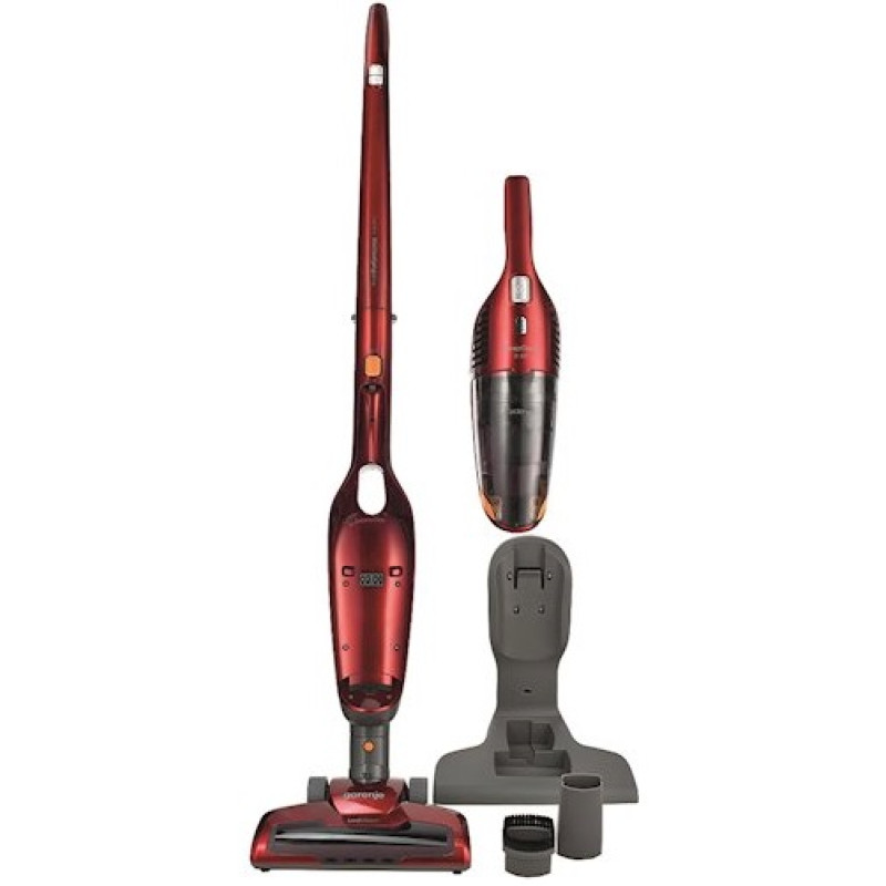 Вертикальний бездротовий пилосос 2 в 1 SVC 216FR від компанії Gorenje потужністю в 125 Вт, оснащений циклонічною системою збору пилу з HEPA-фільтрацією. Просте від'єднання ручного пилососа, складаний корпус, низький рівень шуму при роботі та м'яка ручка підвищують комфорт експлуатації. Додаткові насадки спрощують прибирання.