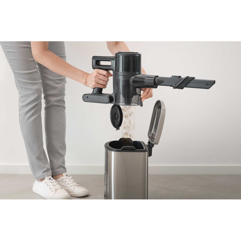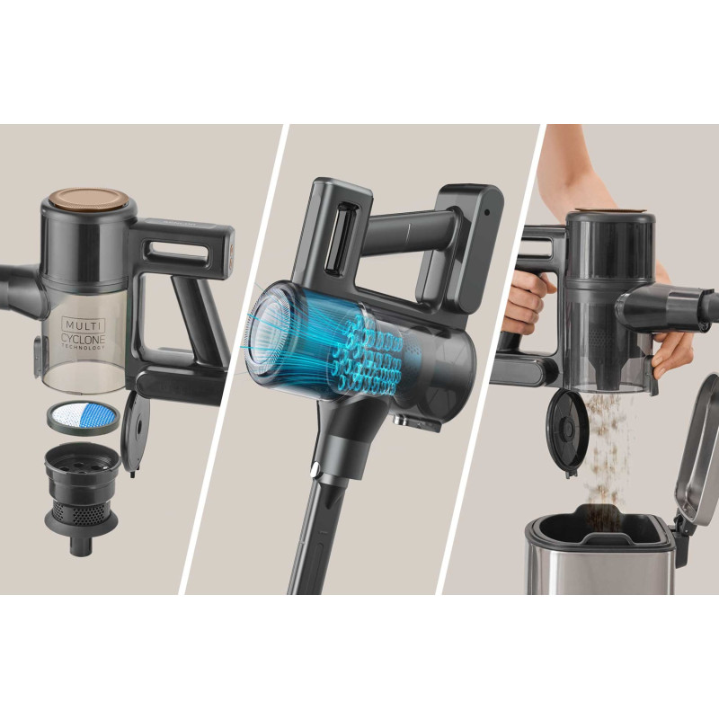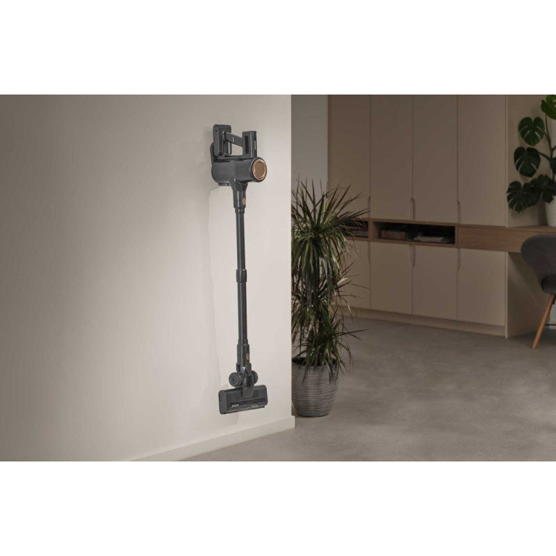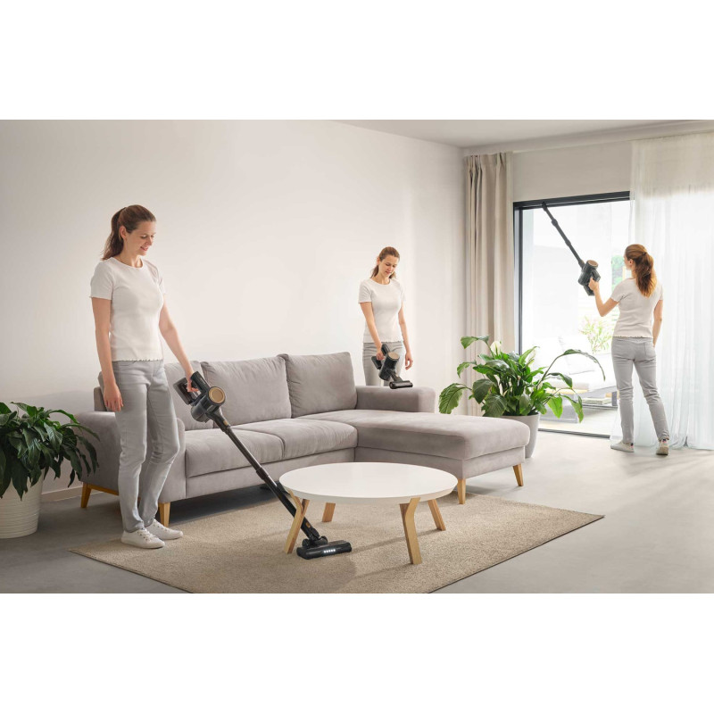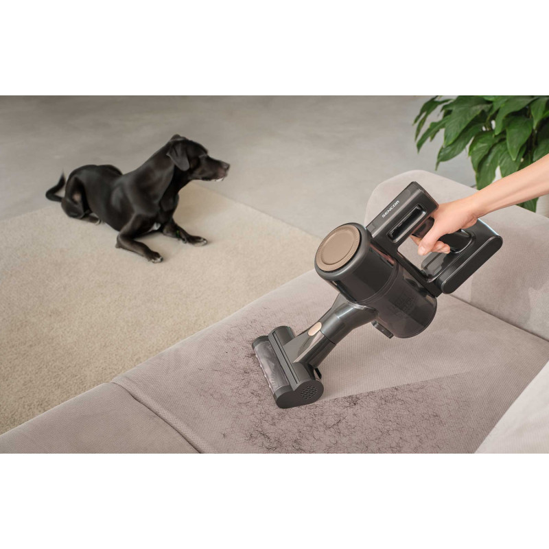 Потужний цифровий мотор 200 Вт забезпечує ефективне прибирання килимів і твердих підлог за допомогою моторизованої насадки і LED-підсвічування, що виявляє навіть найдрібніший бруд. Домашні меблі й автомобільні сидіння легко очистити за допомогою знімної ручної одиниці та моторизованої щітки Cat&Dog. Високоефективна Li-Ion батарея 22,2 В (2 600 мА·год) забезпечує до 35 хвилин роботи.