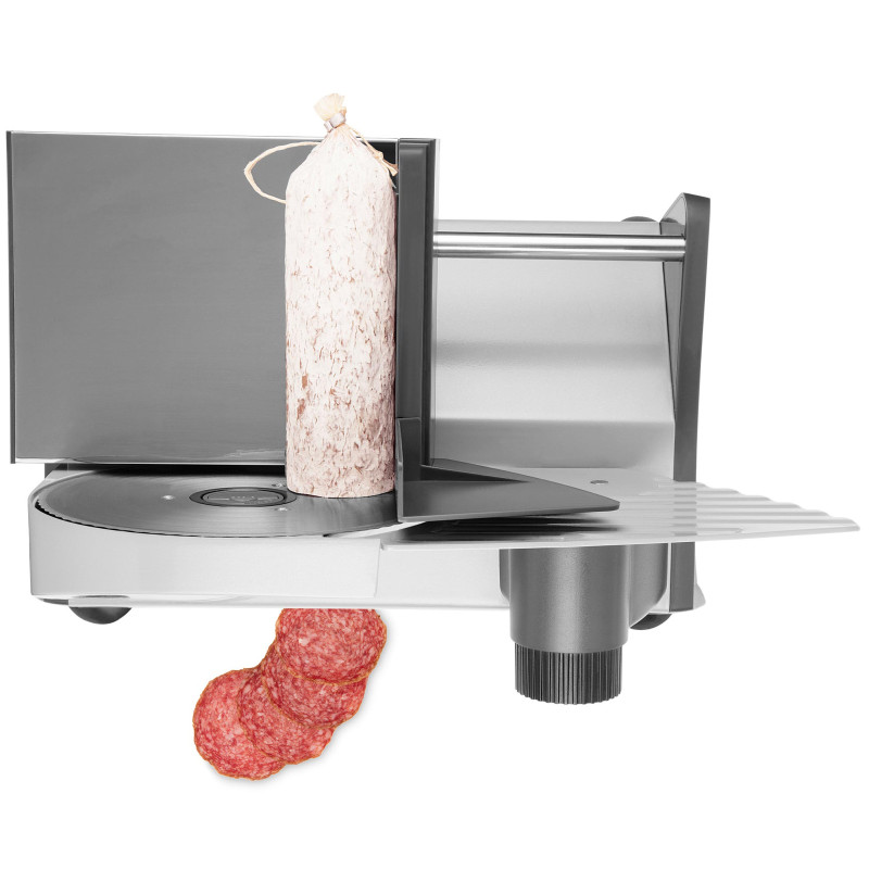 - Притискний механізм подачі (155 x 82 мм) з фіксуючими штифтами, що оберігають від випадкового переміщення продуктів під час різання