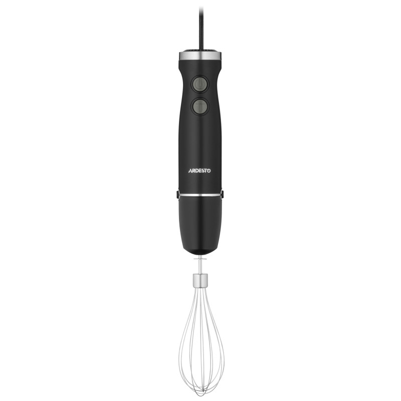 Занурювальний блендер ARDESTO HBG-600BWH чорно-сріблястого кольору згодиться для швидкого приготування коктейлів, смузі, соків і різноманітних соусів. Оснащений двигуном потужністю 600 Вт із низьким рівнем шуму, двома режимами роботи (звичайний і турбо) і п’ятьма швидкостями. Пристрій має тонке ергономічне руків’я, його лезо виготовлено із нержавіючої сталі, а на ніжці передбачено захист від розбризкування. У комплекті є мірна чаша об’ємом 600 мл і віничок для збивання. Довжина кабелю живлення становить 1,3 м.