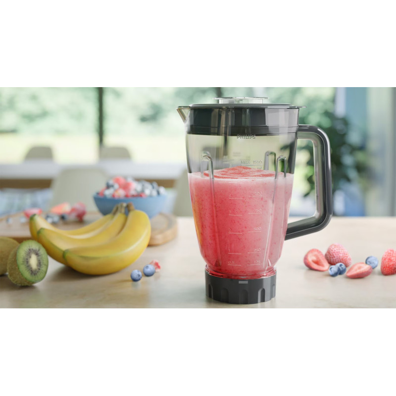 Перетворіть тверді інгредієнти, як-от фрукти та овочі, на смачні смузі за допомогою блендера Philips серії 5000 із двигуном потужністю 1000 Вт. Три режими швидкості та функція Pulse для відчуття повного контролю. Ємності об’ємом 2 л вистачить для всієї родини. Ножі з нержавіючої сталі подрібнюють і змішують плавно й рівномірно. Налаштування очищення роблять процес легким від початку до кінця.