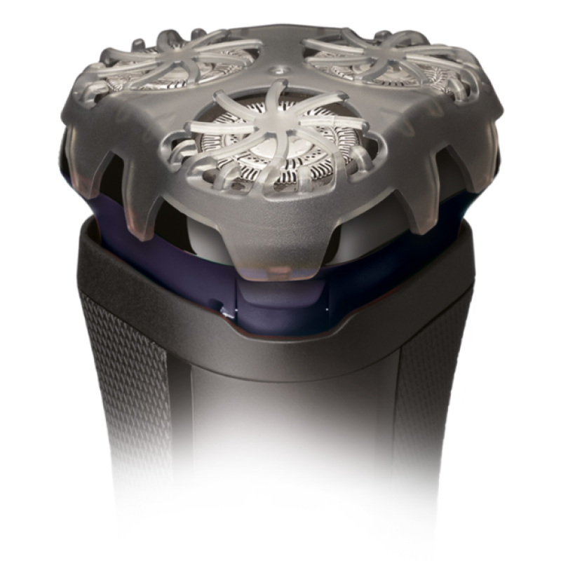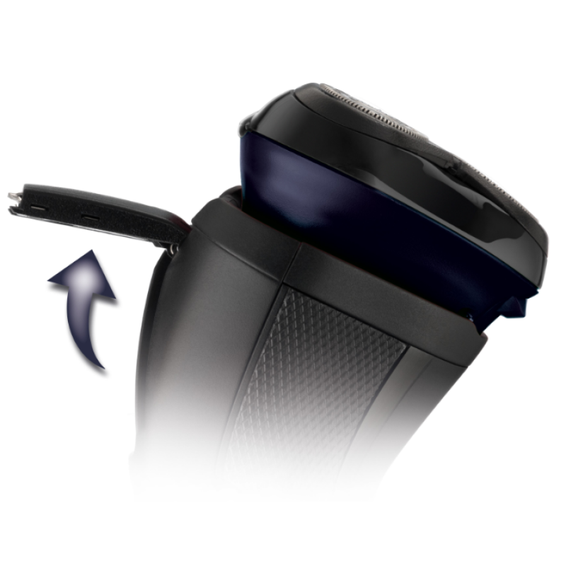 Гнучкі леза дозволяють бритві комфортно повторювати контури вашого обличчя, а поворотна шия підтримує тісний контакт навколо підборіддя, лінії щелепи та шиї.