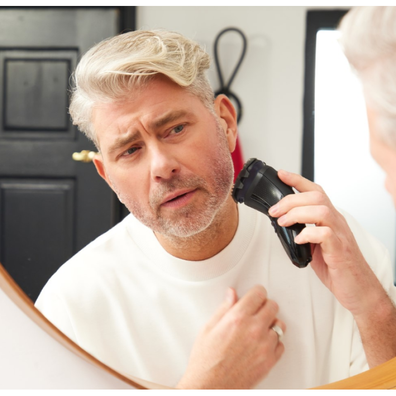 | Особливості | Подвійні леза Гнучкі леза та поворотна шия Висувний тример із лезами ComfortTrim Ергономічна рукоятка – зручна в руці для різних захватів Бездротовий 40 хвилин виконання Час зарядки 16 годин Світлодіодний індикатор 3-денний засіб для укладан |