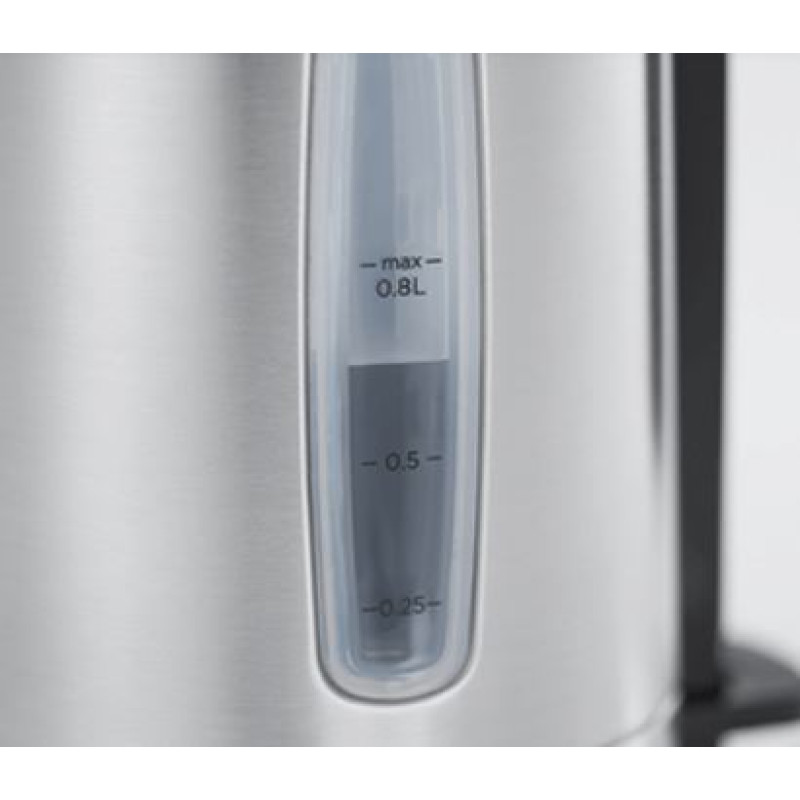 Чайник з нової лінійки приладів для кухні Compact Home був створений спеціально для невеликих квартир, гуртожитків і просто місць, де простір завжди в пошані. 24190-70 поєднує в собі сучасний стиль і чудову продуктивність, зберігаючи при цьому ваш простір на кухні.Корпус чайника виконаний з матової нержавіючої сталі преміум-класу з акцентами з полірованої сталі. Компактні розміри і оптимальна ємність 0,8 л роблять його ідеальним приладом для сімейних пар або тих, хто живе один.Будь то кава, щоб почати свій ранок, чай після довгого робочого дня або трохи води для приготування - цей компактний чайник з легкістю впорається з будь-яким завданням. Потужність чайника 2400 Вт дозволить приготувати улюблені напої за лічені хвилини, що особливо корисно вранці, коли кожна секунда важлива. А завдяки ідеальній формі носика жодної краплі не проллється