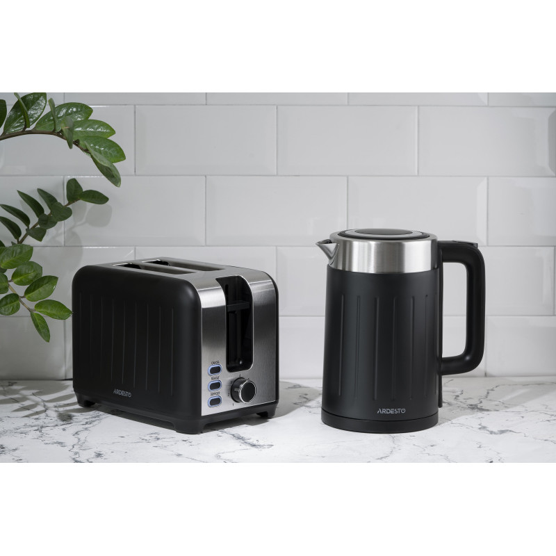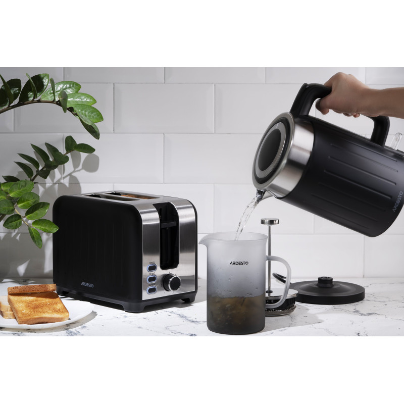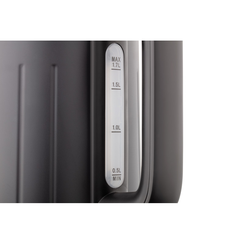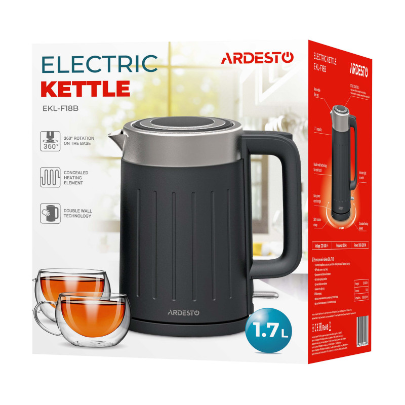 Електрочайник чорного кольору із захисту від перегріву. Об’єм чайника EKL-F18B складає 1,7 літра, а підставка забезпечує оберт на 360°. Матеріал корпусу – надійний та довговічний полікарбонат та нержавіюча сталь.