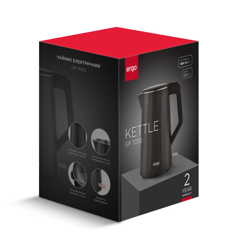 Електрочайник ERGO GP-7050 виготовляється лише з перевірених та екологічних матеріалів, які забезпечують надійність і безпечність усієї конструкції пристрою. Дворічна гарантія на виріб є відмінною запорукою того, що цей чайник прослужить довго та без проблем.