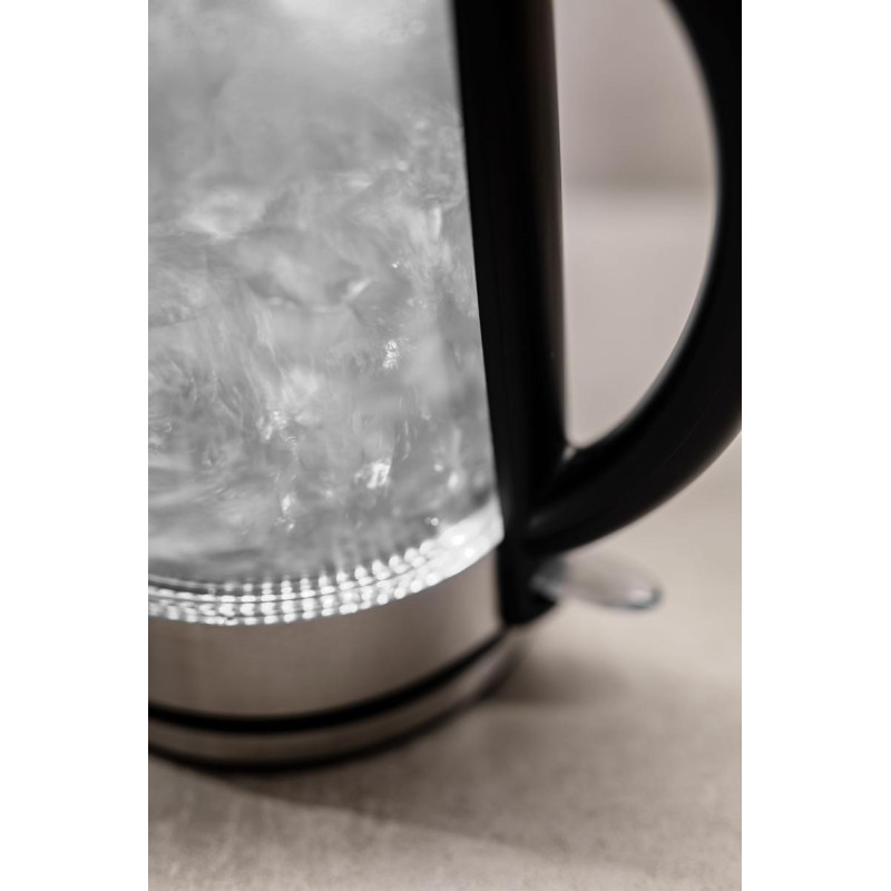 Електрочайник Gorenje K17GDWII об'ємом 1,7 літра та потужністю 2200 Вт забезпечує швидке кип'ятіння води. Він оснащений високоякісним контролером Strix для надійної та безпечної роботи. Корпус чайника виконаний із міцного скла з елементами з нержавіючої сталі, що надає йому стильного та сучасного вигляду. Прозорий дизайн дозволяє легко контролювати рівень води, а поєднання скла та нержавіючої сталі забезпечує довговічність і естетичність.