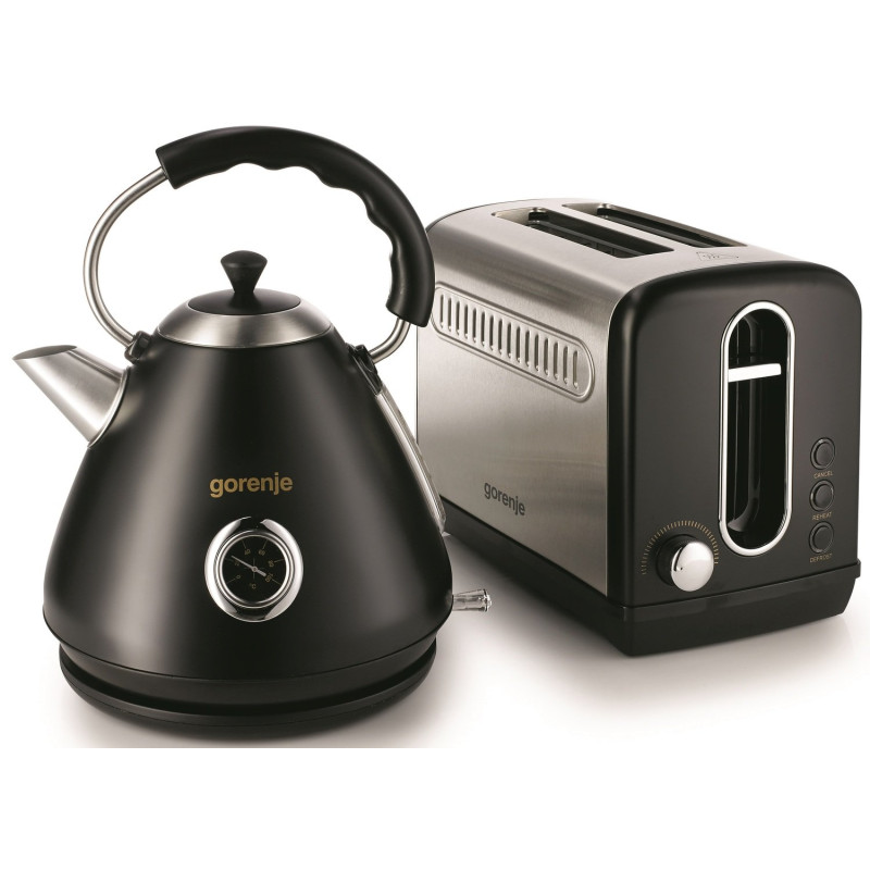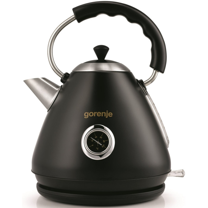 Чайник Gorenje K17CLBK з колекції Classico виконаний в чорному кольорі. Незвичайний круглий індикатор температури розташований на корпусі. Автоматичне відключення при закипанні або при відсутності води забезпечує безпеку експлуатації. Фільтр можна зняти, щоб вимити. Прилад обертається на 360 градусів щодо центру підставки, тому його можна ставити з будь-якого боку.