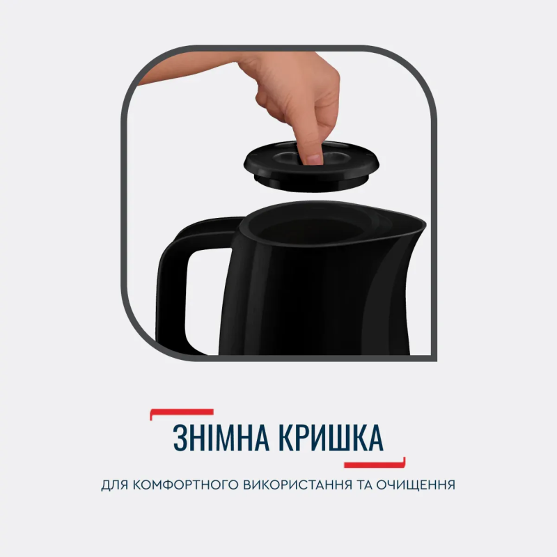 | Особливості | Відсік для шнура, Обертання на 360 °, Термостат Strix, Знімний фільтр від накипу |