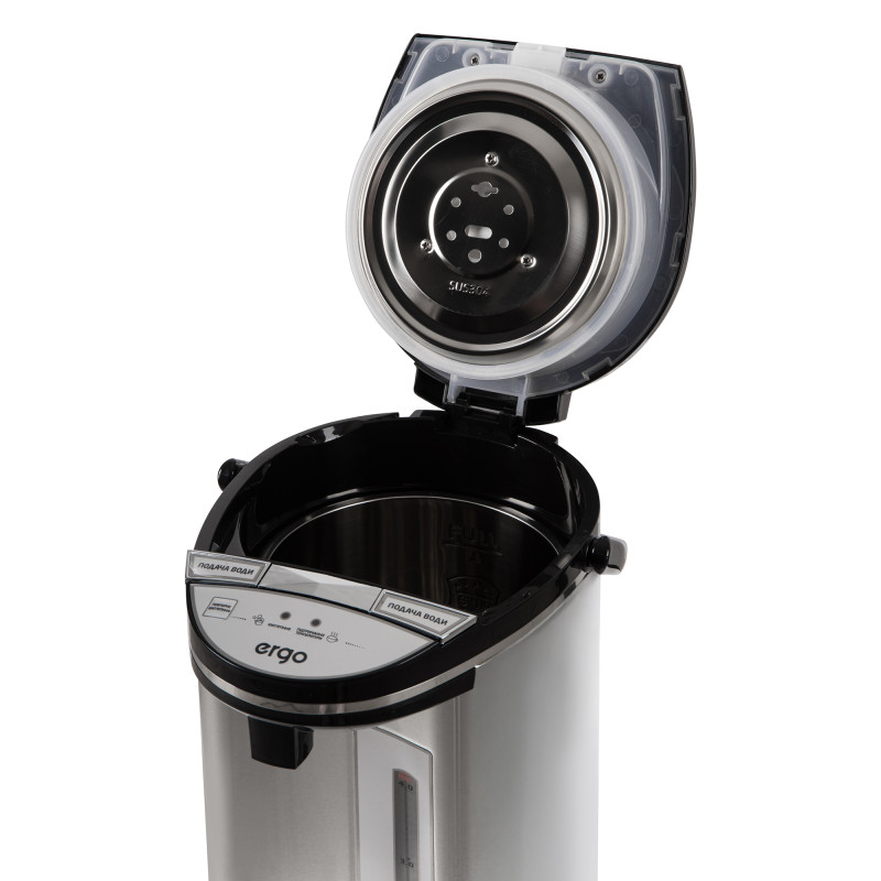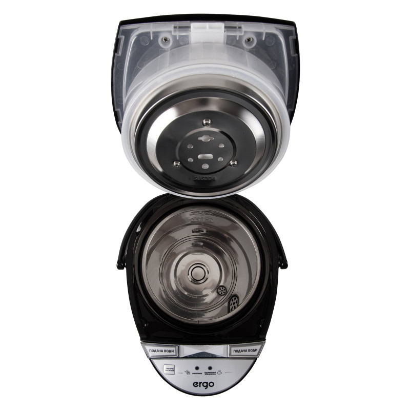 | Особливості | 3 способи подачі воді: автоматичний, дотиком чашки, за допомогою помпи; Потужність у режимі підтримки температури: 35 W (Вт); Індикатор рівня води; Усередині нержавіюча сталь; Кришка із силіконовим ущільнювачем, який не пропускає пару та допомагає утримув |