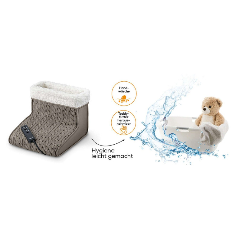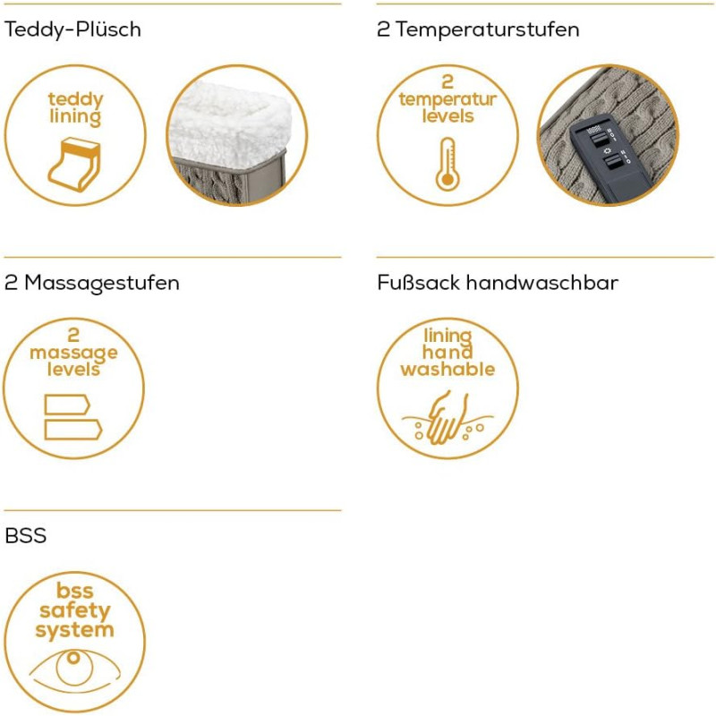 Електрогрілка для ніг за формою нагадує великий чобіт. Вона здатна дарувати тепло та комфорт у будь-яку погоду. Красива, і, найголовніше, зручна форма дозволяє розміщувати у внутрішню порожнину відразу обидві ноги. Знімний чохол за необхідності завжди можна випрати. Прилад не тільки обігріває ноги, а й робить заспокійливий масаж ступнів. Для користувача доступно 2 температурні режими та 2 рівні масажу. Вибираючи необхідний рівень масажу та температури, можете підлаштувати апарат під свої уподобання.