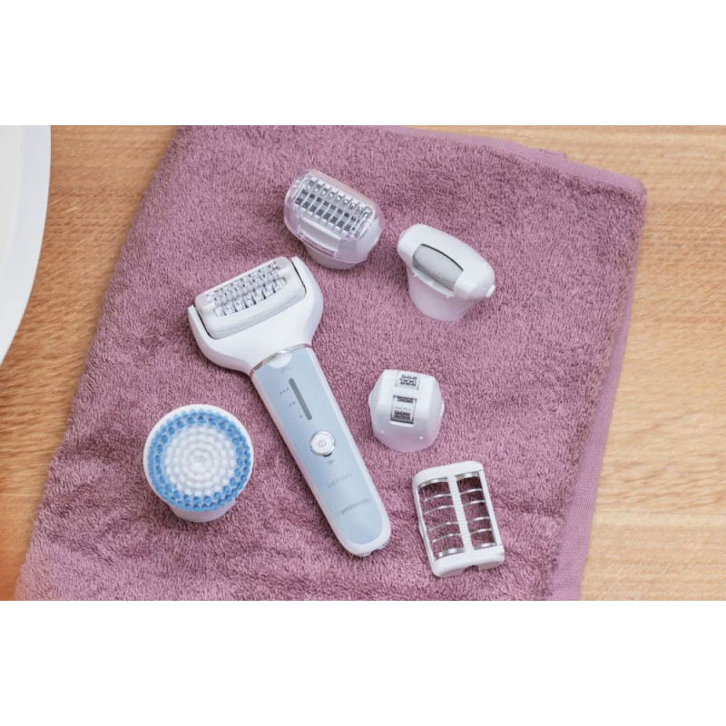 | Насадки | для епіляції ніг/рук, для зони бікіні, для стоп, бритвена голівка, насадка для делікатної епіляції, для зони бікіні та під пахвами, щітка для пілінгу, висувний тример |