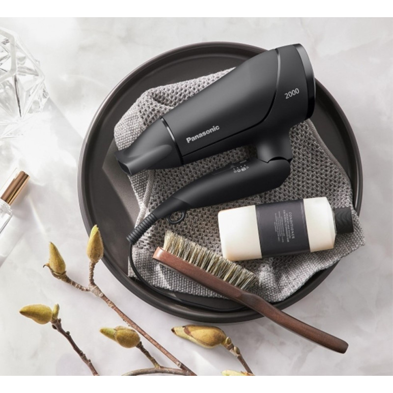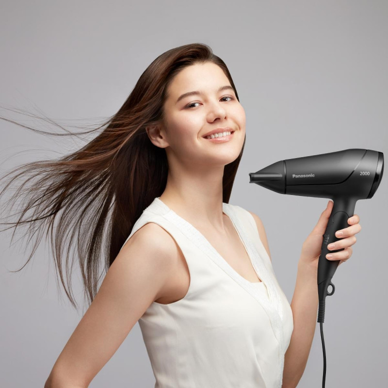 Panasonic EH-ND65-K865 — це дорожній фен потужністю 2000 Вт, розроблений для швидкого сушіння та комфортного використання в будь-яких умовах. Він забезпечує потужний повітряний потік, аналогічний моделям із потужністю 2300 Вт, що дозволяє сушити волосся ефективно і делікатно.