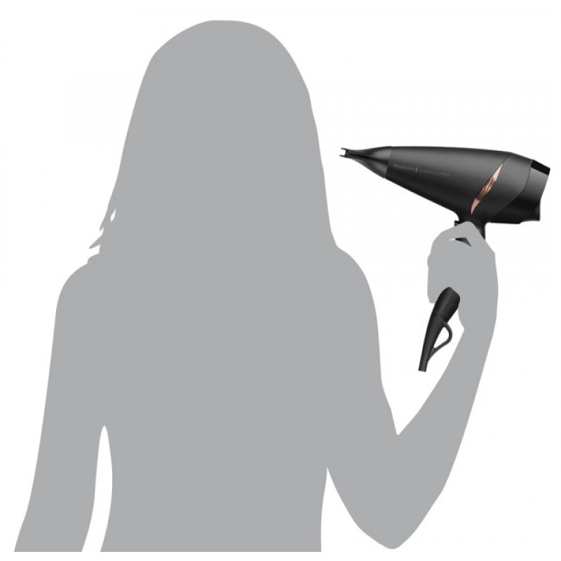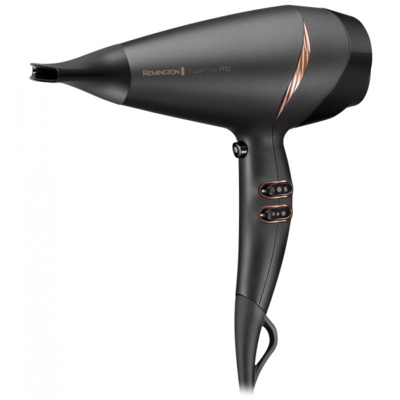 Хочете піклуватися про своє волосся і при цьому домагатися укладання салонного якості? У цьому вам допоможе фен Supercare Pro 2200 AC в чорному кольорі з бронзовими вставками. Він має легкий і компактний корпус і оснащений довговічним двигуном змінного струму потужністю 2200 Вт, що забезпечує швидку і потужну сушку. Налаштування Supercare дозволяє швидко висушити волосся при дбайливої температурі і з турботою про ваше волосся.