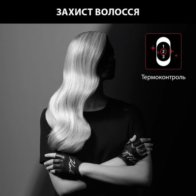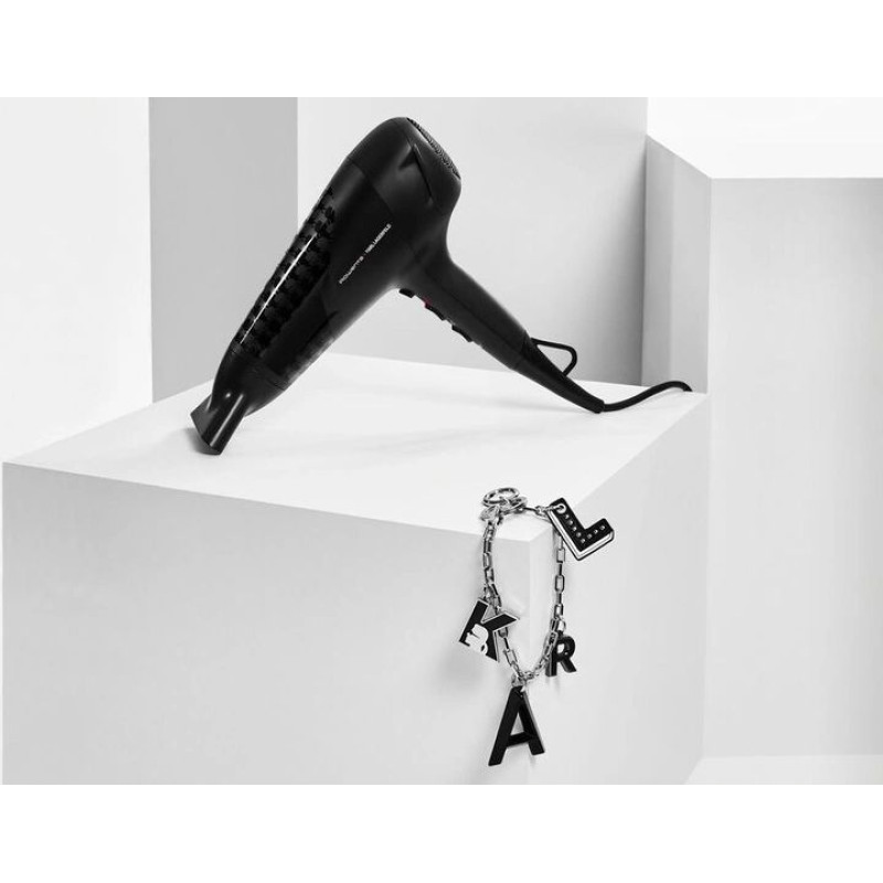 Фен Rowenta STUDIO DRY x KARL LAGERFELD CV581LF0. Швидке висихання без зайвих зусиль: фен Rowenta x KARL LAGERFELD Studio Dry Fen забезпечує бездоганне сушіння та привабливий стиль. Енергозберігаючий мотор потужністю 2300 Вт забезпечує ідеальні результати сушіння в найкоротші терміни, а функція Thermo Control захищає волосся від надмірного тепла та підтримує здоров'я та блиск вашого волосся. Легкі налаштування швидкості/температури забезпечують повний контроль над вашим стилем, з тонким концентратором для створення найдрібніших деталей.