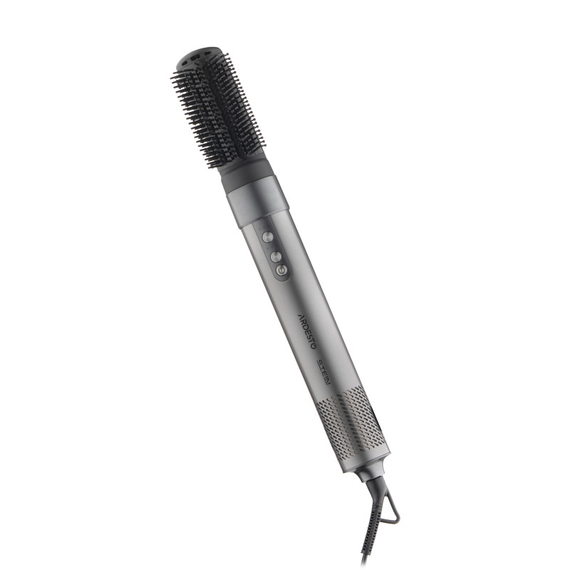Стайлер ARDESTO Stein є універсальним інструментом для створення різноманітних зачісок. Потужний пристрій (1 200–1 400 Вт) оснащено високопродуктивним BLDC-двигуном (110 000 об/хв), функціями іонізації, автоматичного очищення та Cool Shot для фіксації укладання. Передбачено 3 швидкості, 3 температурні режими і 7 змінних насадок: фен, ліво- та правосторонні насадки для завивання, циліндричні насадки 33 мм, 50 мм і овальну 70 мм для локонів та хвиль, а також щітку для розгладжування волосся. Пристрій має кабель, який обертається на 360°, із петелькою для підвішування, яка підвищує зручність зберігання та використання. Стайлер забезпечує професійні можливості за комфортних домашніх умов.