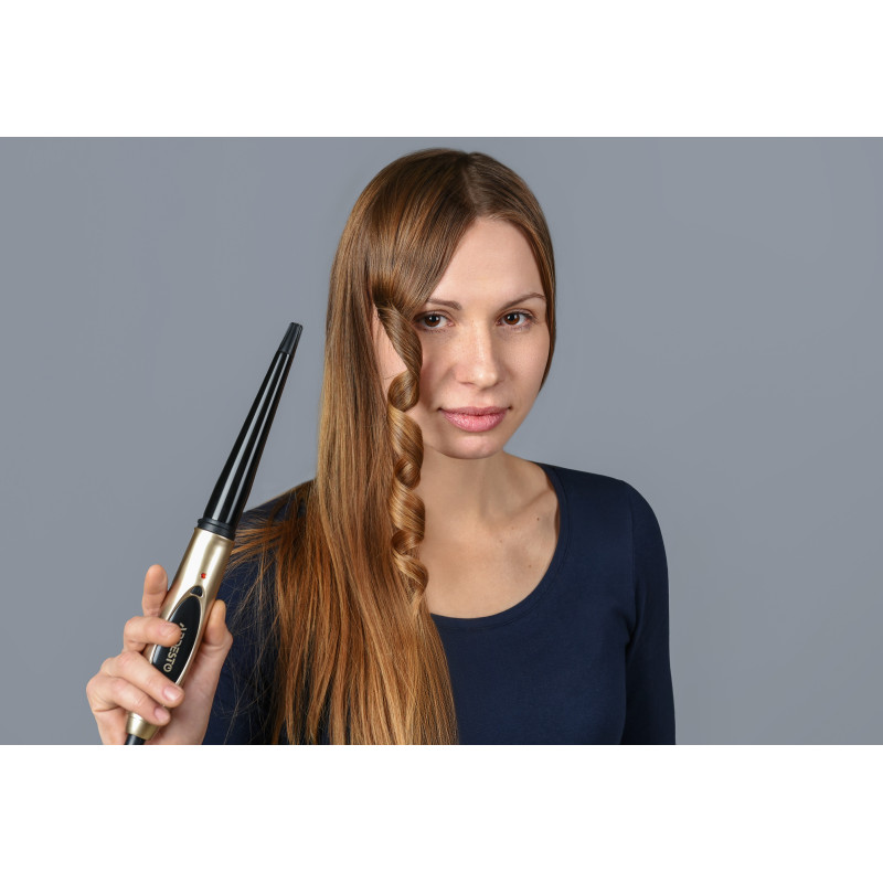 Конусна плойка з керамічним покриттям для створення горизонтальних і вертикальних локонів та ефекту природної хвилі.