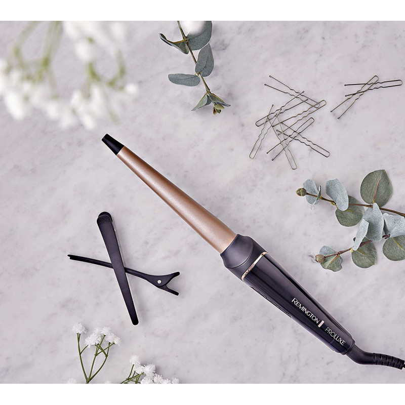 Ця розкішна плойка для завивки з розкішним м'яким чорним покриттям з акцентами з рожевого золота не тільки виглядає чудово, але і дає вам професійні результати укладання завдяки своїй 13-25-мм конусу. Плойка допоможе Вам створити ці розкішні спіральні локони, це буде вашим новим інструментом для створення стилю.