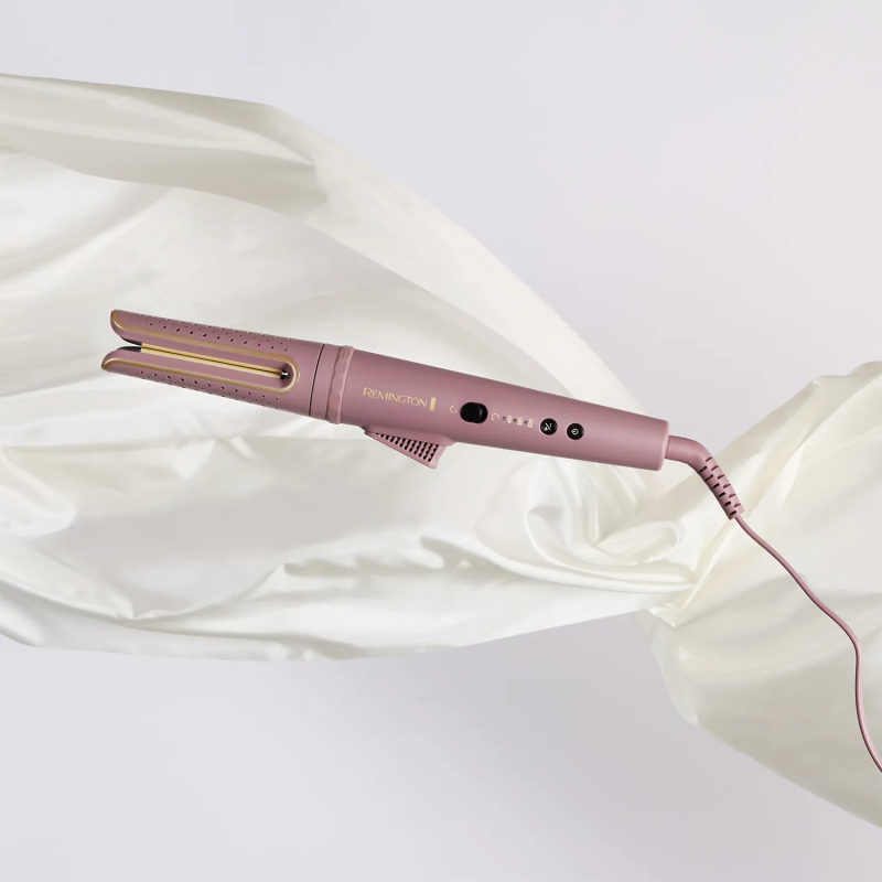 Випрямляч для завивки Remington AIRvive із обертовим розділеним стволом, який допомагає створювати пружні локони або м’які хвилі з мінімумом зусиль. Іонізоване повітря під час укладання миттєво охолоджує волосся та зменшує статичну електрику, а керамічні пластини з тепловоактивними мікрокондиціонерами сприяють контролю пухнастості протягом усього дня. Три цифрові температурні режими дозволяють обирати інтенсивність укладання залежно від типу волосся та бажаного результату.