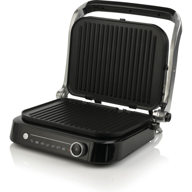 Смаження, запікання та приготування на грилі. Контактний гриль можна відрегулювати відповідно до товщини їжі, що на ньому готується. Крім того, верхню пластину гриля можна повністю відкинути назад, створивши другу поверхню для смаження на зразок відкритого гриля. Готуйте смачні та корисні страви на грилі. Мінімальний час приготування, інтенсивний і рівномірний розподіл тепла, прямий контакт з верхньою та нижньою гриль-пластинами зберігають поживну цінність та соковитість інгредієнтів, що готуються.