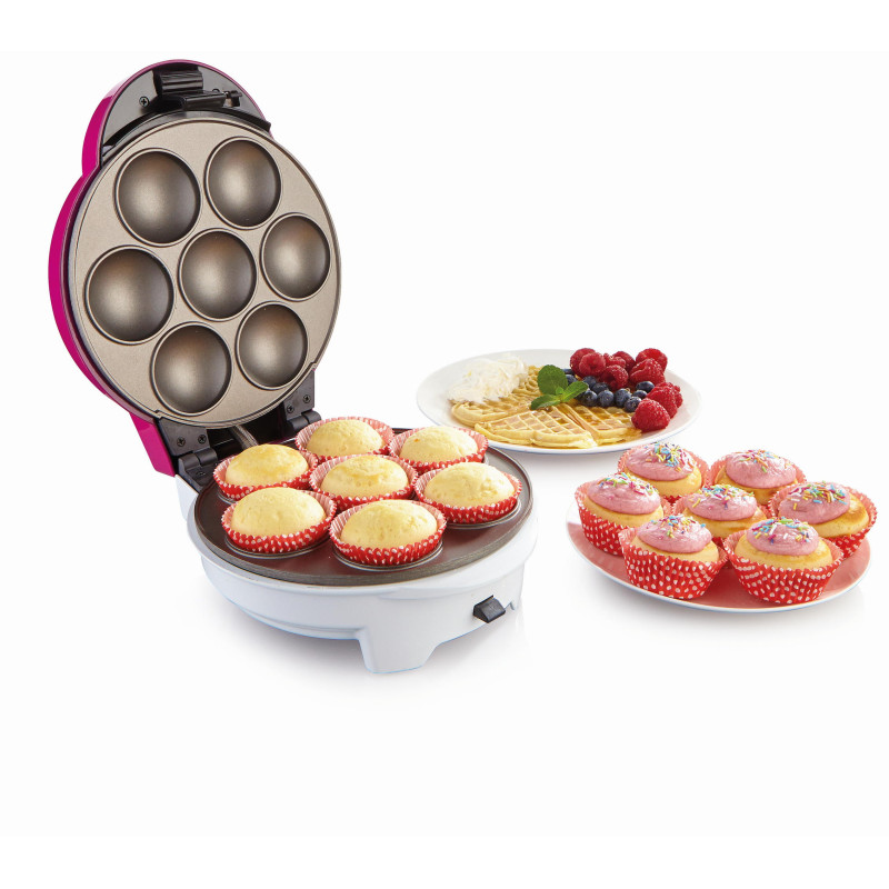 Нехай вас не турбує те, що прилад займає багато місця на робочому столі або в кухонному шафці. Зберігаючи прилад у вертикальному положенні ви раціонально використовуєте простір, не навантажувати стільницю і завжди є прилад під рукою. Прилад комплектується набором форм для приготування вафель і капкейков. Всі форми виготовлені з міцного алюмінієвого сплаву і покриті спеціальним покриттям, що запобігає пригорання. Форми стійкі до подряпин і їх легко мити.