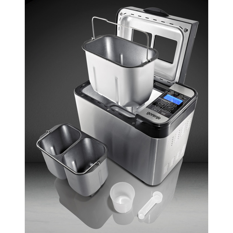 GORENJE BM 1400 E оснащена широким сенсорним дисплеєм, великим оглядовим вікном і програмованим таймером. При необхідності Ви зможете відтермінувати старт до 13 годин. Також пристрій здатний зберегти програму при непередбаченому вимкненні електроенергії на 10 хвилин.