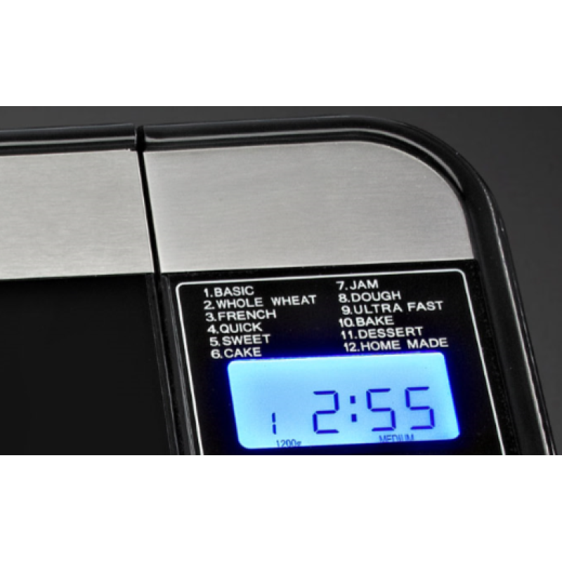 Програмне меню хлібопічки дозволить Вам приготувати 12 різних видів хліба від стандартного рецепта та швидкої випічки до французького хліба та тістечок. Передбачено два режими на вибір кольору скоринки (світла, середня, темна) та розміру буханки (1000 г, 1200 г або 1400 г). Також Ви зможете використовувати цей пристрій для приготування тіста та джему.