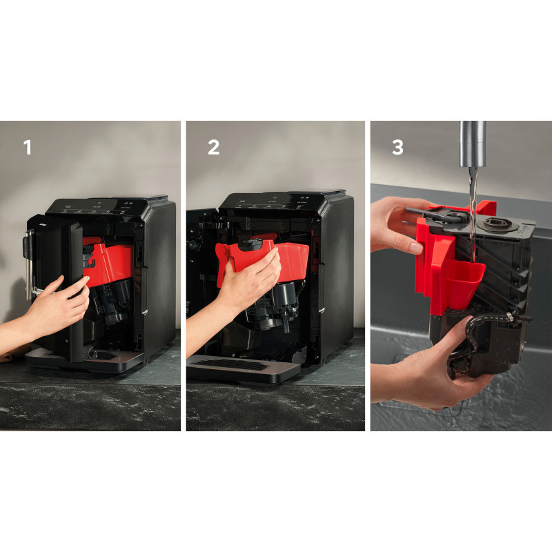 | Особливості | регулювання ступеня помелу/багаторівневий, деталі можна мити в посудомийній машині:/піддон для крапель, насадка для молока, конт. для кавової гущі, знімний заварювальний блок, система calc'nClean/автоматично очищає та видаляє накип, керамічний кавовий мли |